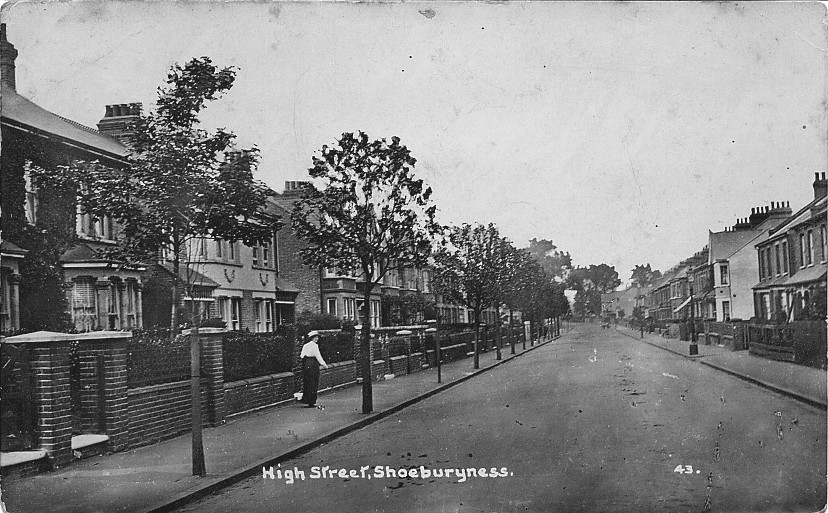 Street, Shoeburyness [1920] I lived in the right hand semi-detached house between the first two trees on the left from 1951 to 1967. |